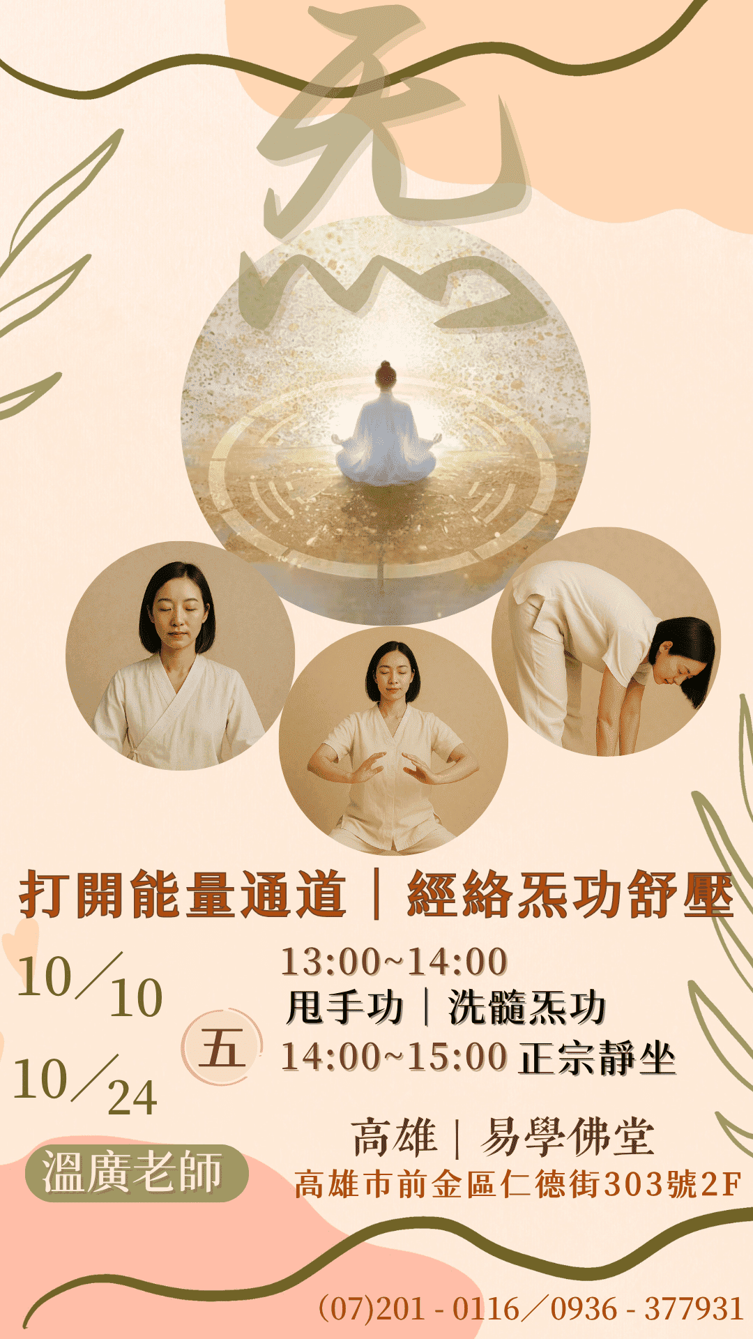首頁活動報名高雄佛堂|10月公益課程|趨陰轉陽|洗髓炁功經絡養身法『溫廣老師』高雄佛堂|10月公益課程|趨陰轉陽|洗髓炁功經絡養身法『溫廣老師』公益講座報名時間:2025年9月1日 0:00 〜 2025年10月24日 15:00活動時間:2025年10月10日 13:00活動地點:高雄佛堂高雄市前金區仁德街303號2樓報名已開始,即將在 9 天 後結束。前往填寫網頁時間:2025年10月15日 3:25 請先前往登入