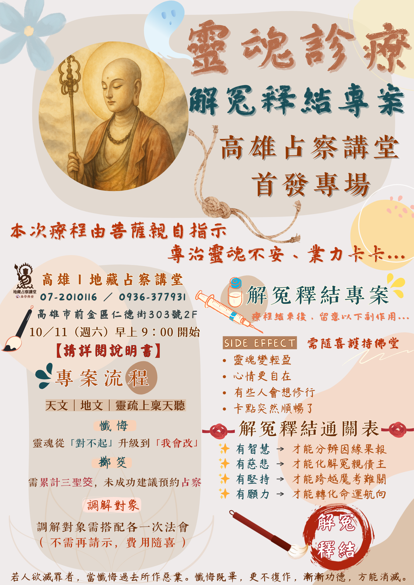 高雄佛堂首發專場|靈魂診療。解冤釋結專案(天文地文靈文上稟)